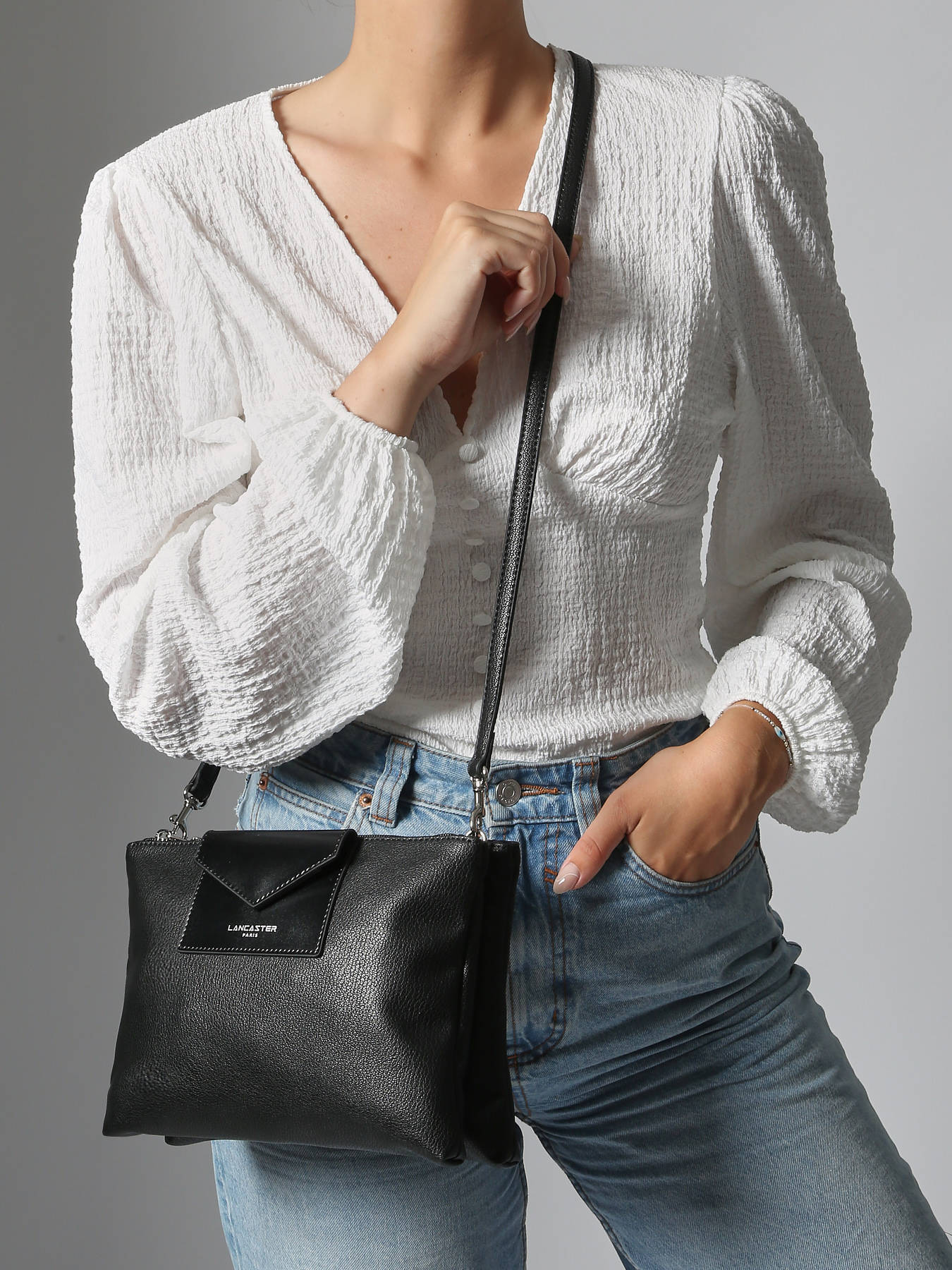 Dit stijlvolle cross body tasje uit de Maya collectie van Lancaster is gemaakt uit een unieke mix van ledersoorten. De tas uit grainé leder werd namelijk afgewerkt met een matlederen enveloppevakje aan de voorzijde. Dit model beschikt over twee compacte ritsvakken, en een open steekvakje in het midden. Zo kunt u uw spulletjes overzichtelijk opbergen. Het lederen schouderriempje is verstelbaar, en kan gekruist of lang over de schouder gedragen worden.