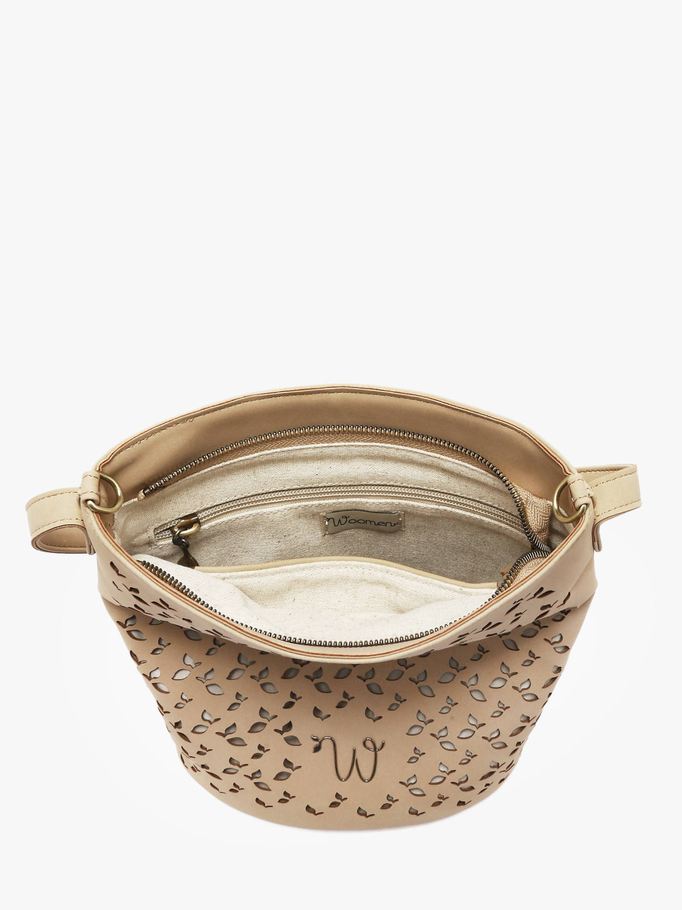 De cross body tas WOOMEN uit de lijn Zamia combineert elegantie, functionaliteit en duurzame betrokkenheid. Het hoofdmateriaal van polyurethaan, bestaande uit 58% gerecyclede materialen en gevoerd met katoen en linnen, biedt lichtheid en stevigheid. Het materiaal met opengewerkte kleine blaadjes geeft het model originaliteit en raffinement. Deze bucketbag beschikt over een afneembare schouderriem, een klein handvat voor handmatig dragen, en sluit met een onzichtbare magneet. Binnenin zorgen een ritsvak en een steekvak voor eenvoudig organiseren van je essentials. Het gouden resinelogo maakt het ontwerp compleet, waardoor deze tas een praktisch en stijlvol accessoire is voor al je outfits.