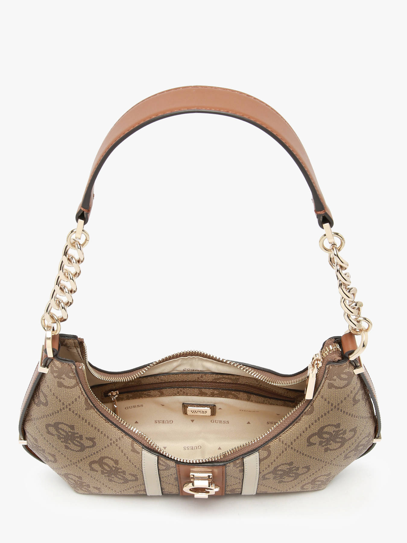 De schoudertas ERENIA van Guess, gemaakt van duurzaam gecoat canvas, combineert moderne stijl en functionaliteit voor dagelijks gebruik. De ritssluiting beveiligt je spullen en voegt een strakke en elegante vleugje toe aan het design. Met een handvat van 29 cm kan hij comfortabel over de schouder worden gedragen en biedt hij een verzorgde en vrouwelijke uitstraling. Het interieur bestaat uit een ruim hoofdcompartiment, aangevuld met drie eenvoudige vakken en een vak met ritssluiting, zodat je essentials zoals telefoon, portefeuille of kleine accessoires netjes kunt opbergen en organiseren. Licht en functioneel onderscheidt de ERENIA zich door zijn eigentijdse uitstraling en verfijnde eenvoud, perfect om al je stedelijke of casual outfits aan te vullen. Het praktische ontwerp en de elegante lijnen maken het tot een veelzijdige tas, geschikt voor dagelijks gebruik, uitstapjes en meer ontspannen gelegenheden. Verfijnd en modern belichaamt deze tas de dynamische en trendy geest van het merk Guess.