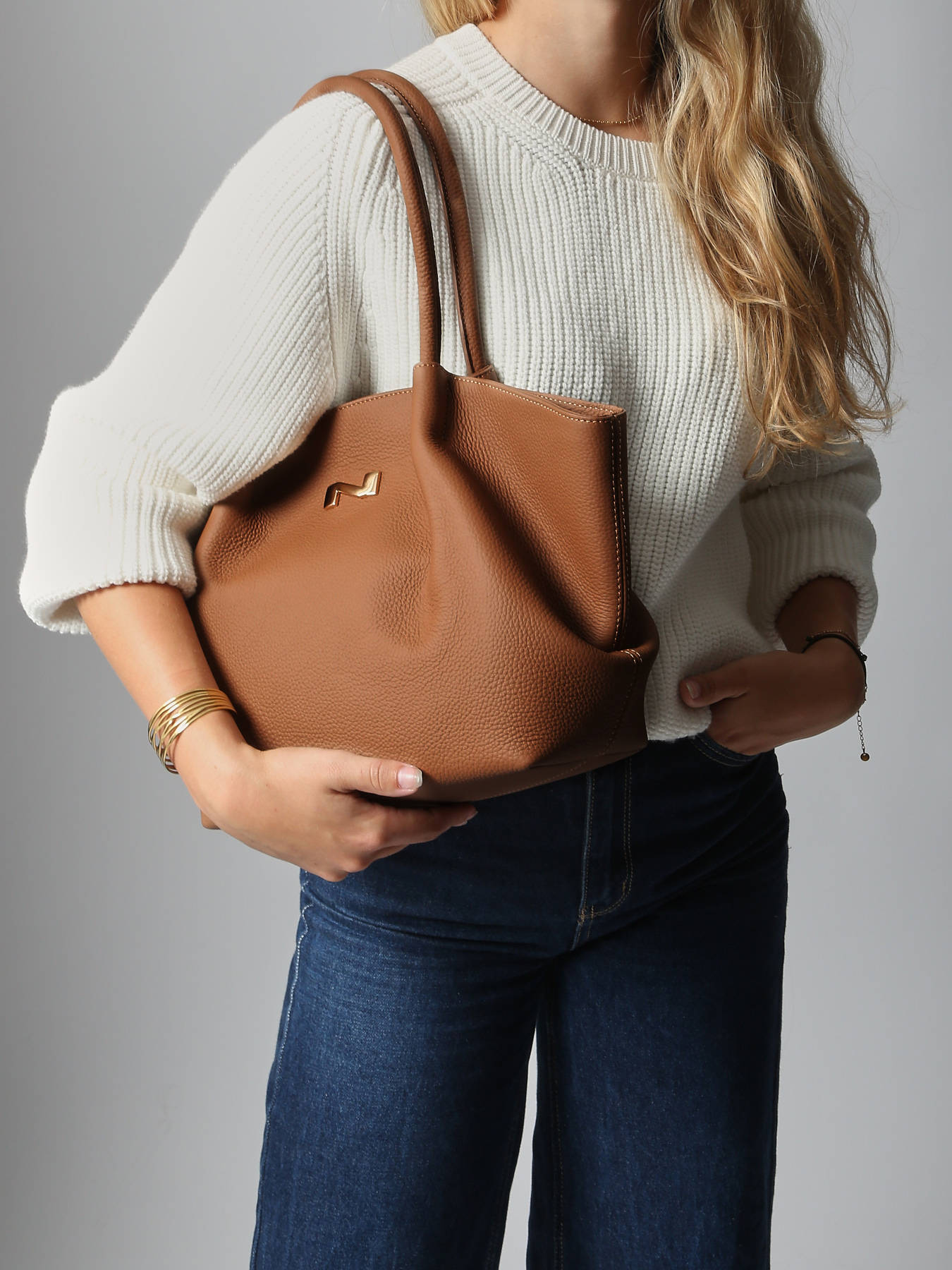 De schoudertas Galatée van NATHAN BAUME belichaamt een elegante en moderne stijl, ontworpen om het dagelijks leven te verfraaien. Gemaakt van hoogwaardig rundleer, biedt hij een zachte en duurzame textuur, die een comfortabel en langdurig draagcomfort garandeert. De magnetische sluiting zorgt voor gemakkelijke toegang terwijl uw spullen veilig worden opgeborgen, terwijl de verfijnde en gestructureerde vorm een vleugje verfijning aan al uw outfits toevoegt. Het handvat van 19 cm maakt comfortabel dragen over de schouder mogelijk, ideaal voor stadsverplaatsingen of uitjes. Het interieur bestaat uit een hoofdvak, een eenvoudig zakje en een ritsvak, waardoor uw essentiële en persoonlijke spullen perfect georganiseerd zijn. Zowel chique als functioneel, weerspiegelt de Galatée de ingetogen elegantie en ambachtelijke kwaliteit die kenmerkend zijn voor NATHAN BAUME, waardoor deze tas een ideale metgezel is voor alle gelegenheden.