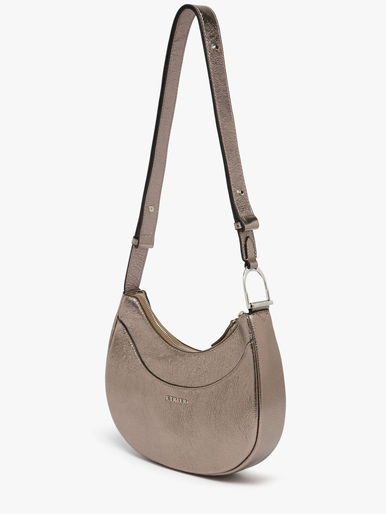 De schoudertas ETRIER uit de JOLLY-lijn is gemaakt van iriserend runderleer, wat een stralende elegantie toevoegt aan dit gedurfde model. De ritssluiting garandeert de veiligheid van uw persoonlijke spullen, terwijl het buitenvak aan de achterkant snelle en handige toegang biedt tot uw essentials. De verstelbare schouderriem zorgt voor comfortabel dragen over de schouder, ideaal voor dagelijks gebruik. Binnenin is het hoofdvak aangevuld met een open vak en een ritsvak, wat de organisatie vergemakkelijkt. De JOLLY-lijn is geïnspireerd door de ‘Highlander Cowboy’-geest en combineert een wilde uitstraling met moderne verfijning. Het Etrier-logo detail op de schouderriem geeft deze tas een elegante en onderscheidende finishing touch, perfect om in de winter een unieke stijl te laten zien.