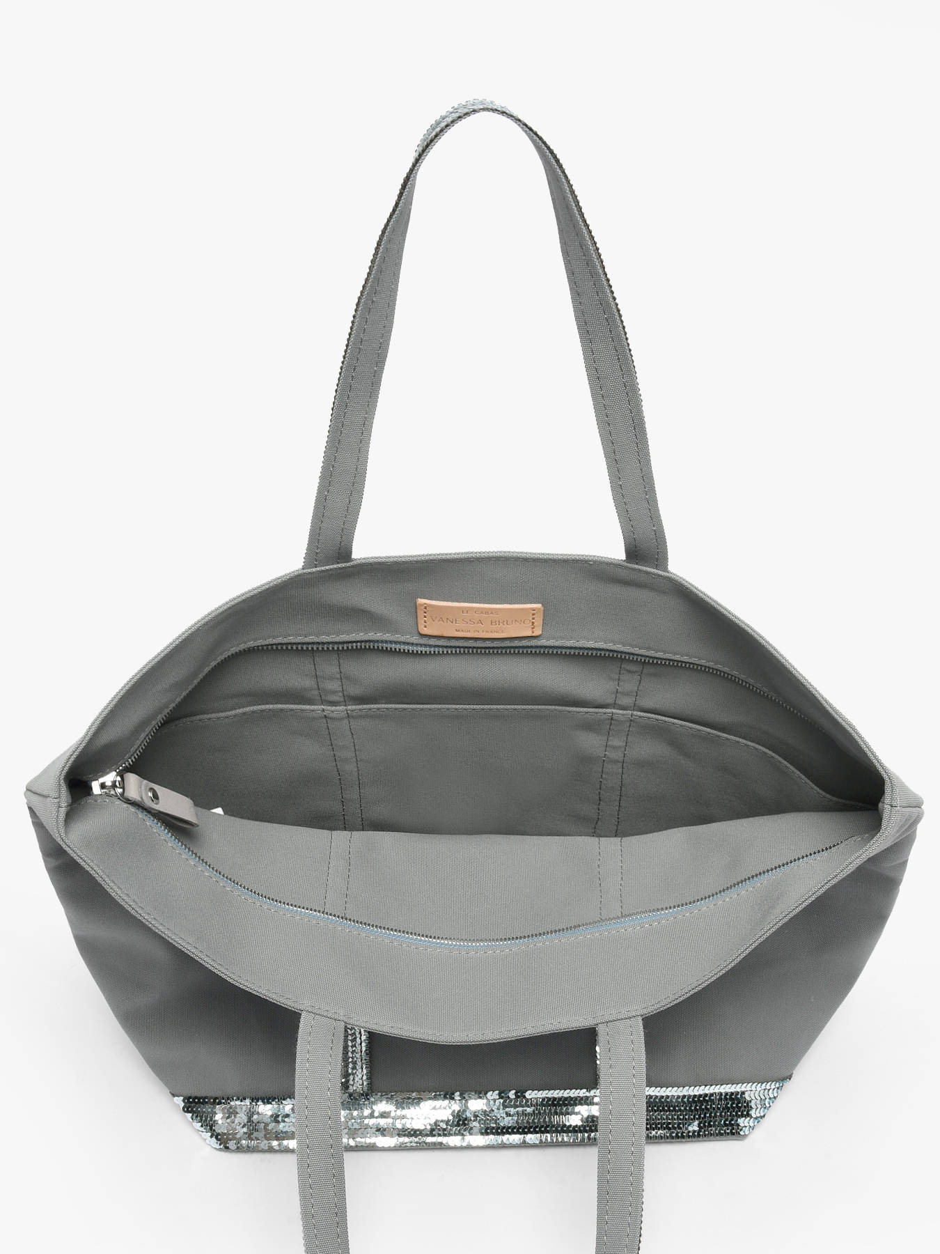 Deze ruime schoudertas met ritssluiting komt uit de Le Cabas collectie van Vanessa Bruno. Deze shopper is gemaakt van stevig katoen, en werd afgewerkt met glinsterende pailletten. Dankzij de twee lange hengsels kan je deze shopper in de hand of losjes over de schouder dragen.