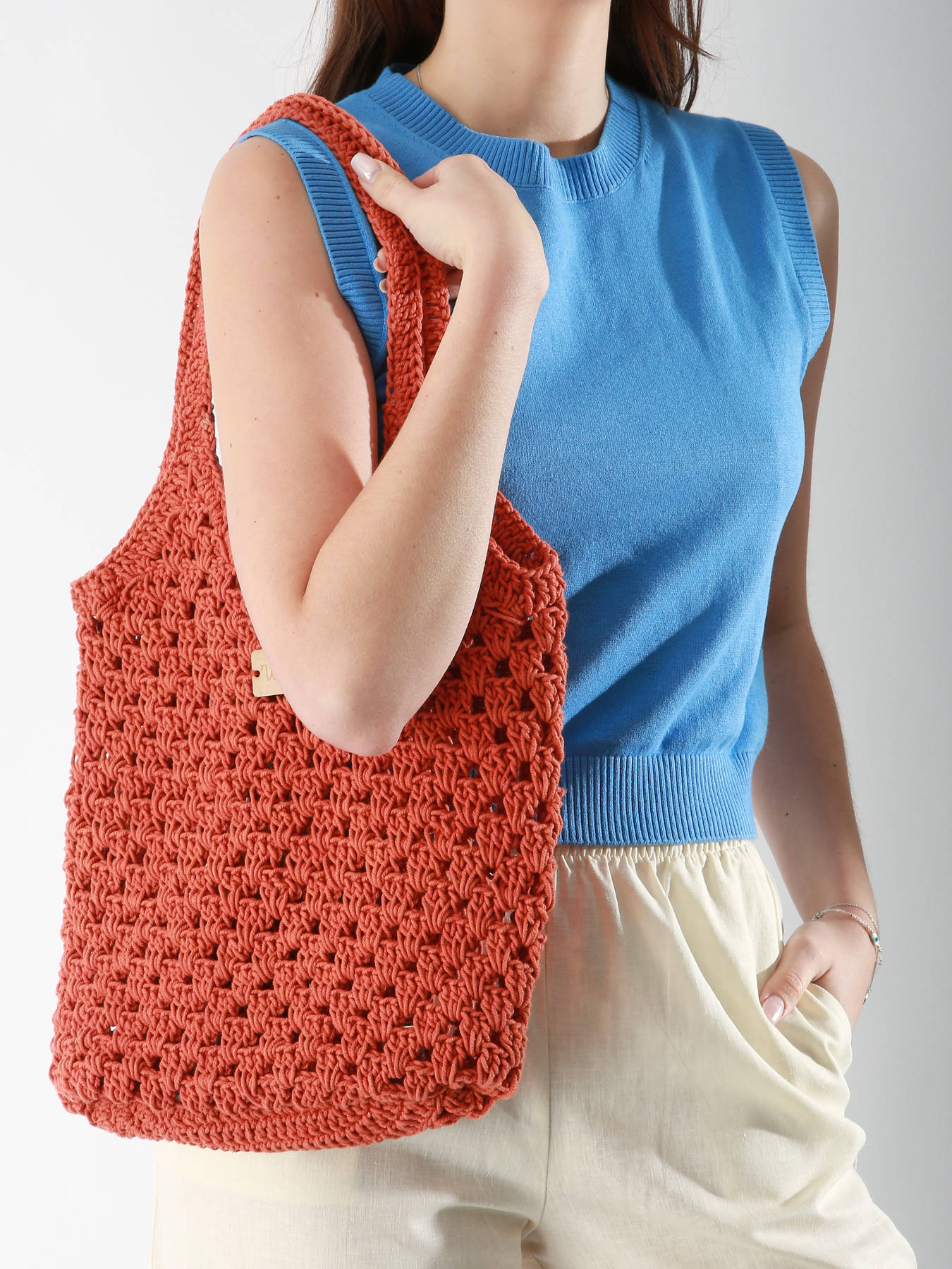 De WOOMEN schoudertas uit de STRELITZIA lijn, gemaakt van katoen, is perfect voor dagelijks gebruik. Ontworpen met vakmanschap, benadrukt het de techniek van haken, wat een authentieke en trendy toets toevoegt. Het wordt over de schouder gedragen en heeft één ruim compartiment, dat eenvoud en praktische bruikbaarheid combineert om je essentiële spullen stijlvol en comfortabel mee te nemen.